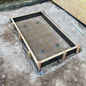 6. Täck med plast och låt fundamentet torka/härda i minst 7 dygn. Håll betongen fuktig under tiden.