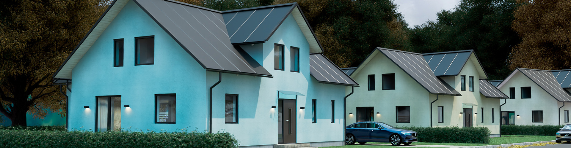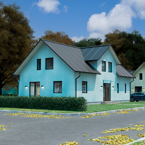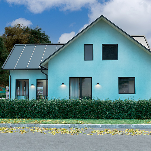 Finja Betong erbjuder flera olika ytbehandlingar med många kulörer och ytstrukturer som skapar genomfärgade, estetiskt tilltalande fasader med personlig prägel. I detta exempel har vi valt att måla huset med Fasadfärg Silikat.