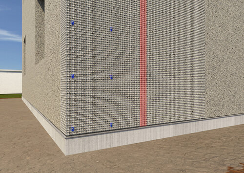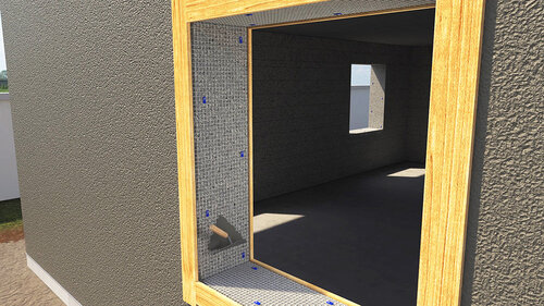 Vid samtliga hörn runt öppningar i vägg sätts extra förstärkningsnät i formatet 250 x 500 mm diagonalt. Förekommer andra nät monteras alltid dessa