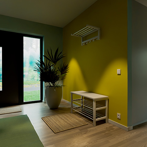 Välj ytputs med hänsyn till underlaget – ytputs, fasadfärg eller ädelputs. I detta exemplet har vi målat med Finja Silikatfärg. Välj den kulör som passar bäst för ändamålet. Se kulörkartor på finja.se.