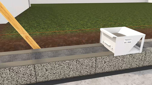 Placera ut Exakt-elementen. Börja med hörnen. Säkerställ att ytterkanterna går i linje med murarsnöret. Placera därefter ut övriga kantelement.
