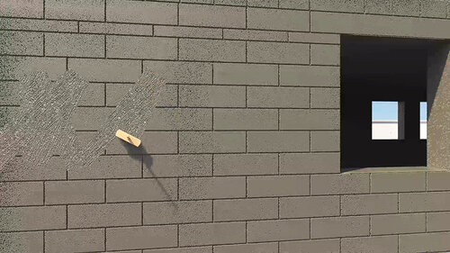 Borsta den grundade ytan med en kalkkvast för att säkerställa att fogar och block täcks. Ytans struktur skall fortsatt vara grov. Gör på samma sätt