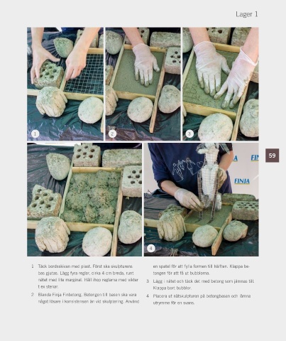 2 Blanda Finja Finbetong. Betongen till basen ska vara 4 Placera ut nätskulpturen på betongbasen och lämna