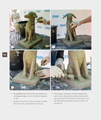 4 När glasfiberbruket suttit en liten stund fäster den i 6 Pensla basen med vatten och börja skulptera bak-