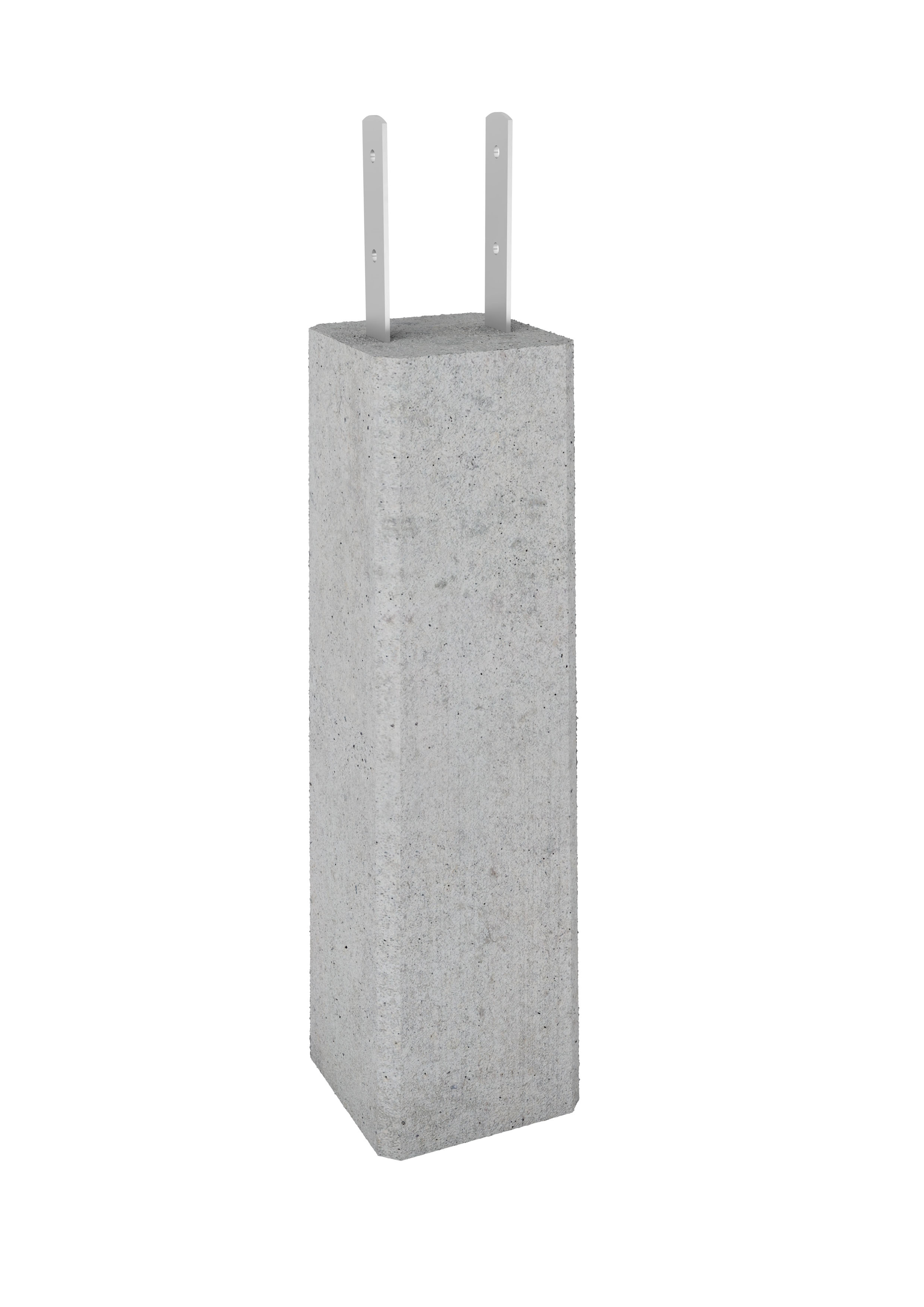 Denna betongplint finns i ett flertal storlekar och höjder. Plintar med 50 cm höjd, vars mått i underkant är 20 x 20 cm, erbjuds i tre varianter med 2, 3 eller 4 tums järnbeslag med hål för M 10. Plintar med 70 cm höjd och samma underkantsmått finns tillgängliga med antingen 2 eller 4 tums järnbeslag, även dessa med hål för M 10.