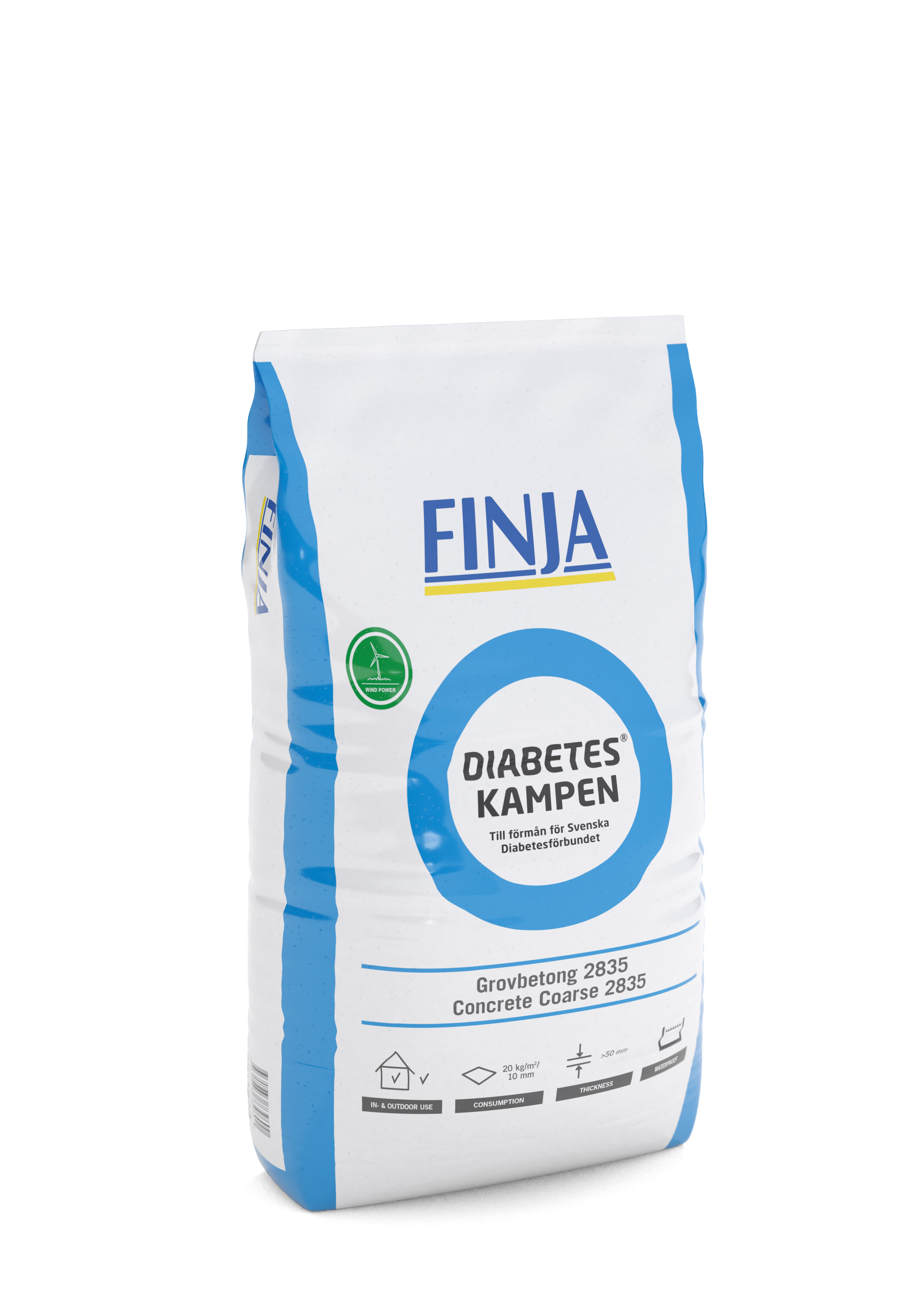 Grovbetong 2835 säljs i plastsäckar om 25 kg. Den levereras på pall och varje pall håller 40 säckar. Plastsäckarna är slitstarka, helt återvinningsbara och förlänger hållbarheten till 24 månader.